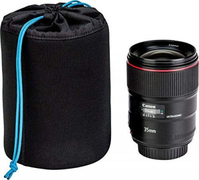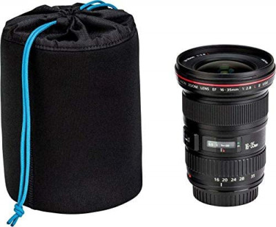 Morbido neoprene per fornire la giusta quantità di protezione extra per lenti all' interno di una borsa più grande. Con chiusura a coulisse cinches sopra la parte anteriore della lente senza arricciarsi. Design leggero fornisce protezione senza essere ingombranti o pesanti.