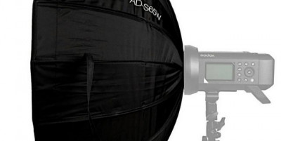 Softbox portatile Godox da 65 cm di diametro che adotta un design a parabola profonda; consente di puntare la luce in modo lineare e di diminuire progressivamente la luminosità partendo dal centro in avanti, offrendo effetti di luce estremamente uniformi e morbidi.