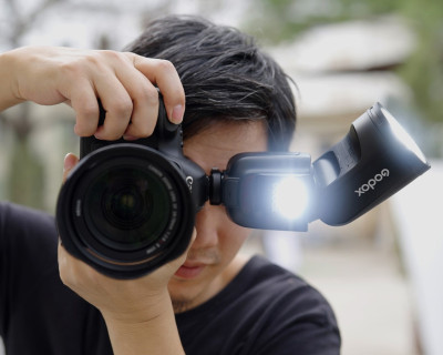 Progettato per i Godox V100 e V1 Pro, questo flash secondario può essere agganciato frontalmente a quello principale per ottenere una migliore luce di riempimento delle scene, utile ad esempio nella fotografia ritrattistica. Regolabile da 1/128 a 1/1 e da -3 a +3 EV con incrementi di 1/3.