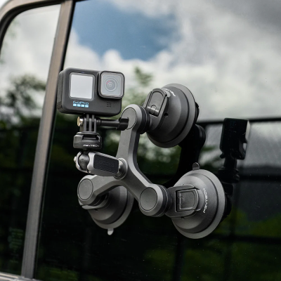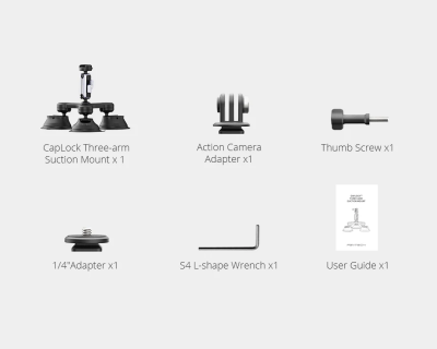 Il design con doppio attacco a sfera permette la massima regolabilità per registrare i tuoi video da qualsiasi angolazione. Le tre ventose, grazie anche alla struttura triangolare, sono ideali per un montaggio stabile su tutte le superfici lisce e piatte. Grazie al sistema di sgancio rapido CapLock è possibile agganciare e sganciare l'actioncam o lo smartphone in un solo step, inoltre il meccanismo di sicurezza Dual-lock ne migliora l'affidabilità. Inclusi nella confezione un adattatore di montaggio per actioncam ed uno con vite da 1/4.