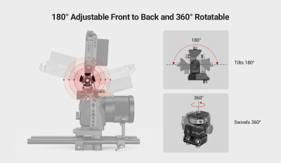 - Tenuta regolabile su ogni asse, girevole di 360° e inclinabile di 180°
