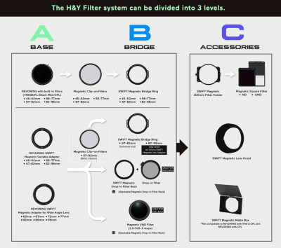 Per tutti i REVORING con filtri incorporati (VND&CPL, CPL, versione Black Mist) è necessario scegliere un anello Bridge della dimensione corrispondente.