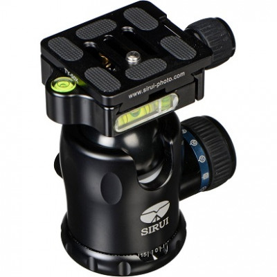 La testa a sfera K-20X della Sirui è una testa estremamente robusta con manopole di controllo per panoramiche, inclinazioni e tensione, oltre a un morsetto tipo Arca per la piastra a sgancio rapido inclusa. Le manopole per la panoramica, inclinazione e rilascio rapido sono tutte separate, mentre la manopola di tensione è integrata nella manopola di blocco della sfera (inclinazione). La testa si inclina di 90° per l’orientamento verticale.