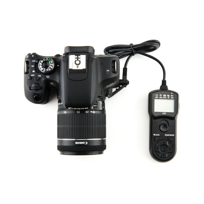 Telecomando per scatto remoto dedicato Canon, dotato di cavo da 90cm e timer autoscatto.
