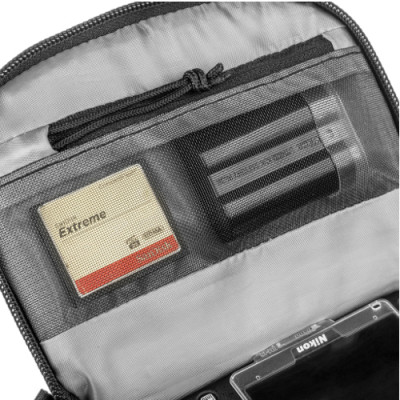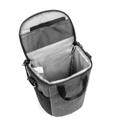 Presenta piccole tasche interne ed esterne in rete per alloggiare gli accessori.
