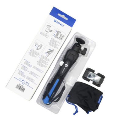 Mini treppiedi multifunzionale, in grado di trasformarsi da treppiede da tavolo ad asta per selfies per il tuo smartphone, telecomando bluetooth a batteria, testa a sfera, astuccio per il trasporto.