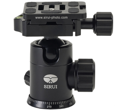 La testa a sfera Sirui E-10 in alluminio da 300g è dotata di un sistema di sgancio rapido compatibile con Arca. Ha due manopole separate, la manopola più grande si sblocca per rilasciare il movimento della sfera, e la serratura pan indipendente rilascia la base panoramica a 360°.