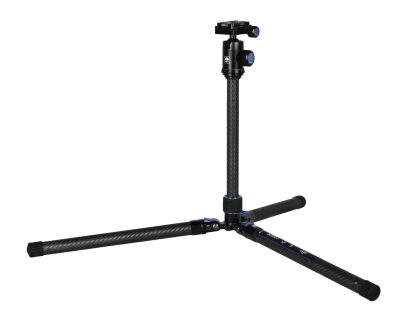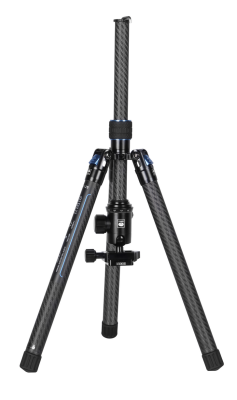 Le gambe e la colonna centrale in fibra di carbonio e le parti in alluminio scavate riducono ulteriormente il peso del treppiede, in modo da poterlo sollevare con facilità.