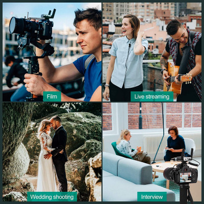 Il filtro passa-alto da 100Hz bypassa i rumori del vento, della corrente e del traffico. Il controllo del guadagno a 15 livelli si adatta a diversi input, dal parlato morbido al suono rimbombante. La batteria agli ioni di litio da 1300 mAh supporta il funzionamento continuo di 8,5 ore. Il caricabatterie rapido accetta una ricarica completa 3 in 1 (1RX + 2TX) in 3 ore. Tutto questo lo rende un microfono wireless professionale.