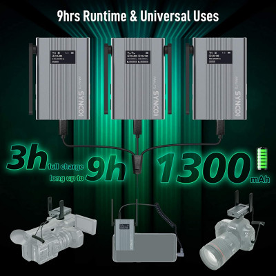 l sistema microfonico wireless SYNCO UHF WMic-TS ha 4 parole chiave, “professionale”, “unico”, “innovativo” e “adattabile”. La tecnologia professionale Wireless LinkLable UHF offre il canale della migliore qualità, l’esclusivo Noise Blocker previene le interferenze delle radiazioni elettromagnetiche, le antenne pieghevoli innovative a 180° trasportano un circuito integrato a microonde per garantire la trasmissione di distorsione zero e a lunga distanza e la potenza di uscita alta / bassa ottiene il microfono adattabile a diversi ambienti. È il miglior sistema di microfoni wireless per registrare dialoghi, interviste e discorsi sul tuo impianto video.