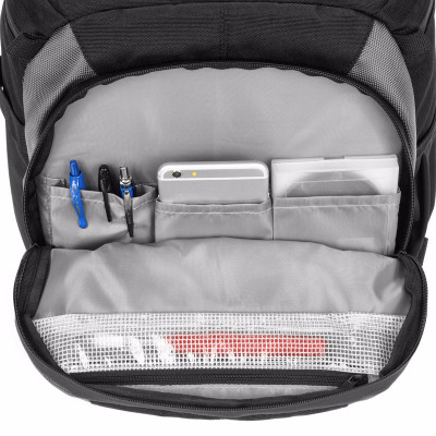 - Una custodia imbottita nello scomparto principale tiene e protegge un tablet o un piccolo notebook.
